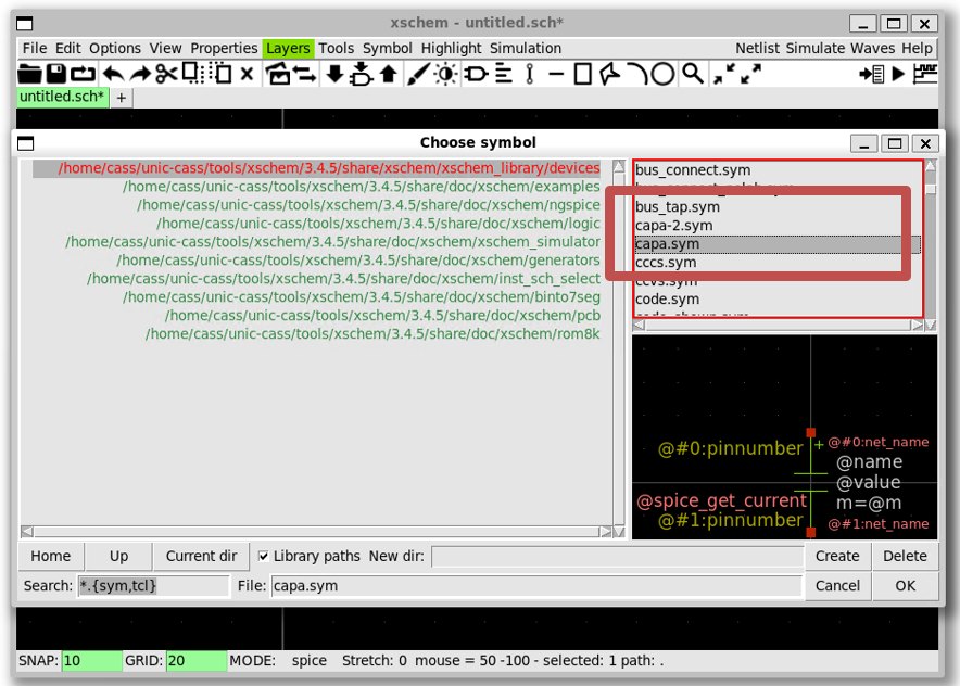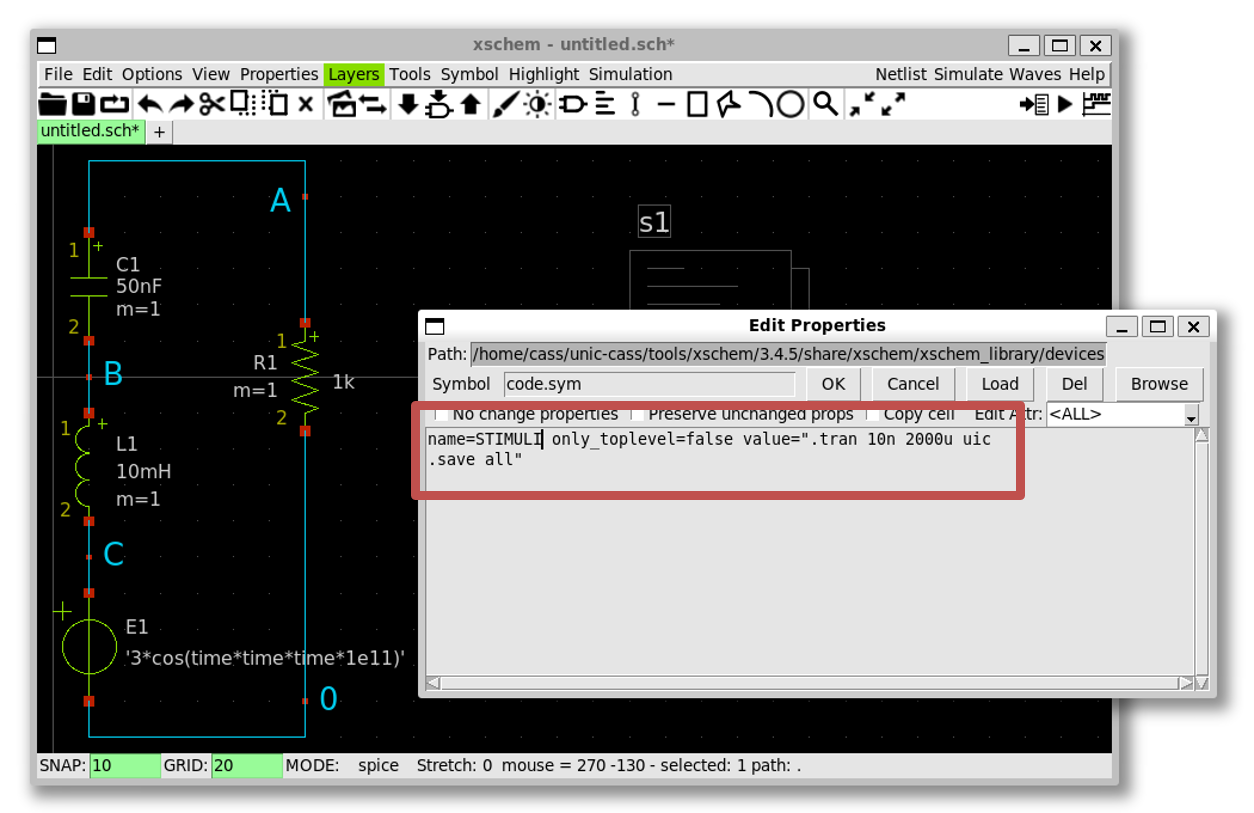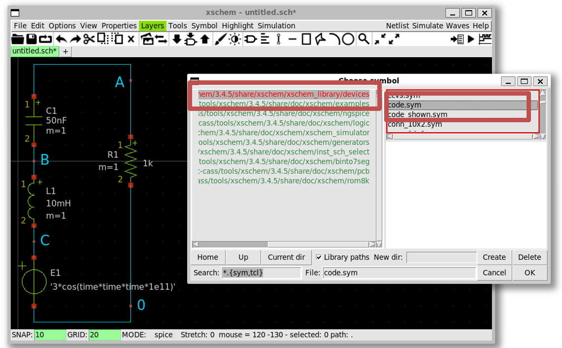 xscheme_library/devices»code.sym»OK» Click on the schematic to place it