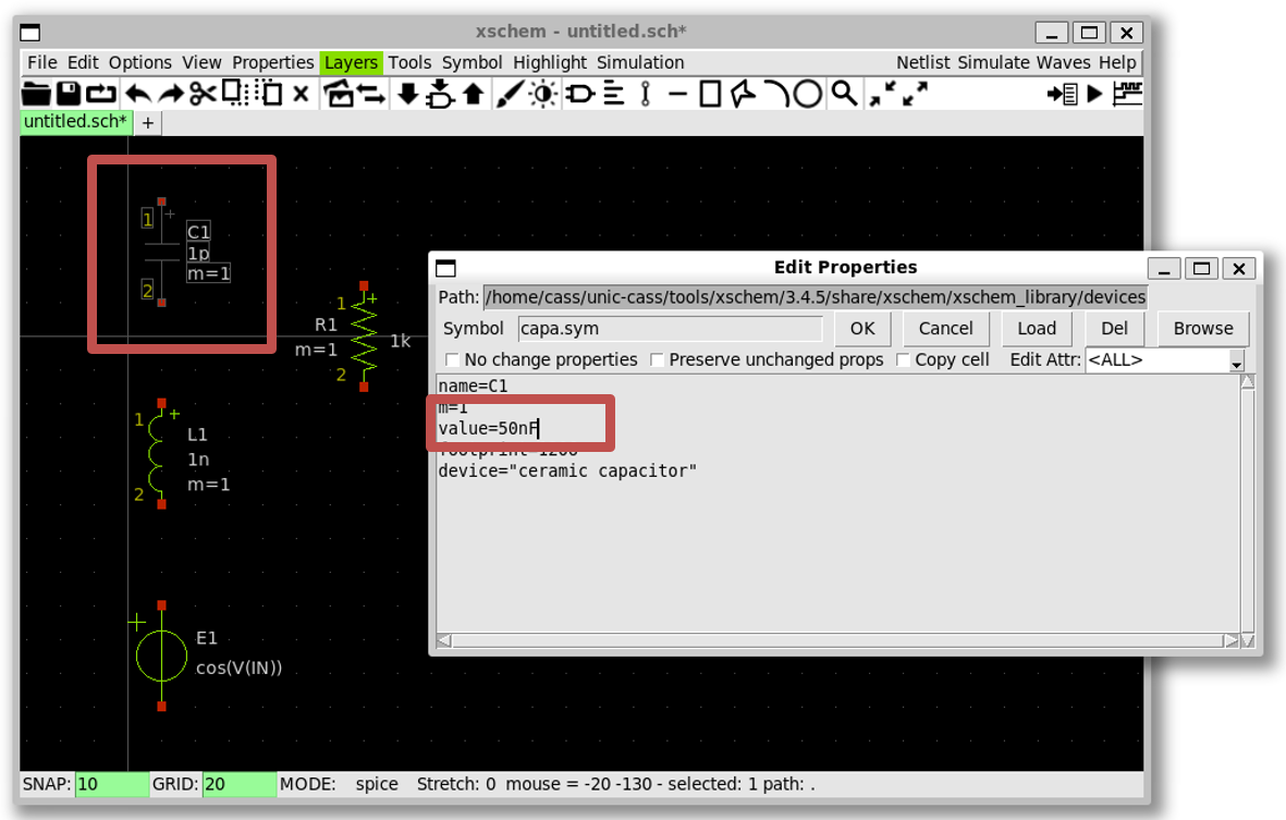 capacitorand pressq; change the value ofC1to50nFthen pressOK