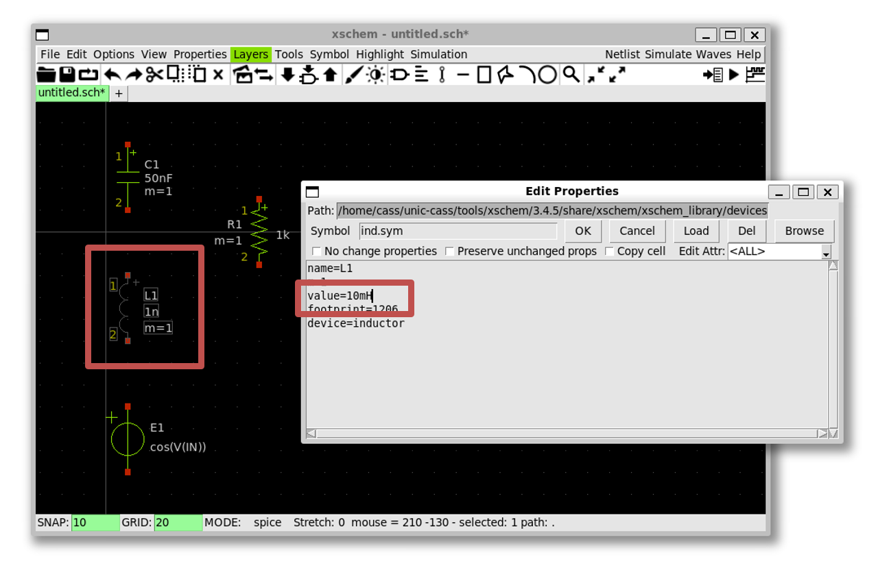 inductorand pressq; change the value ofL1to10mHthen pressOK