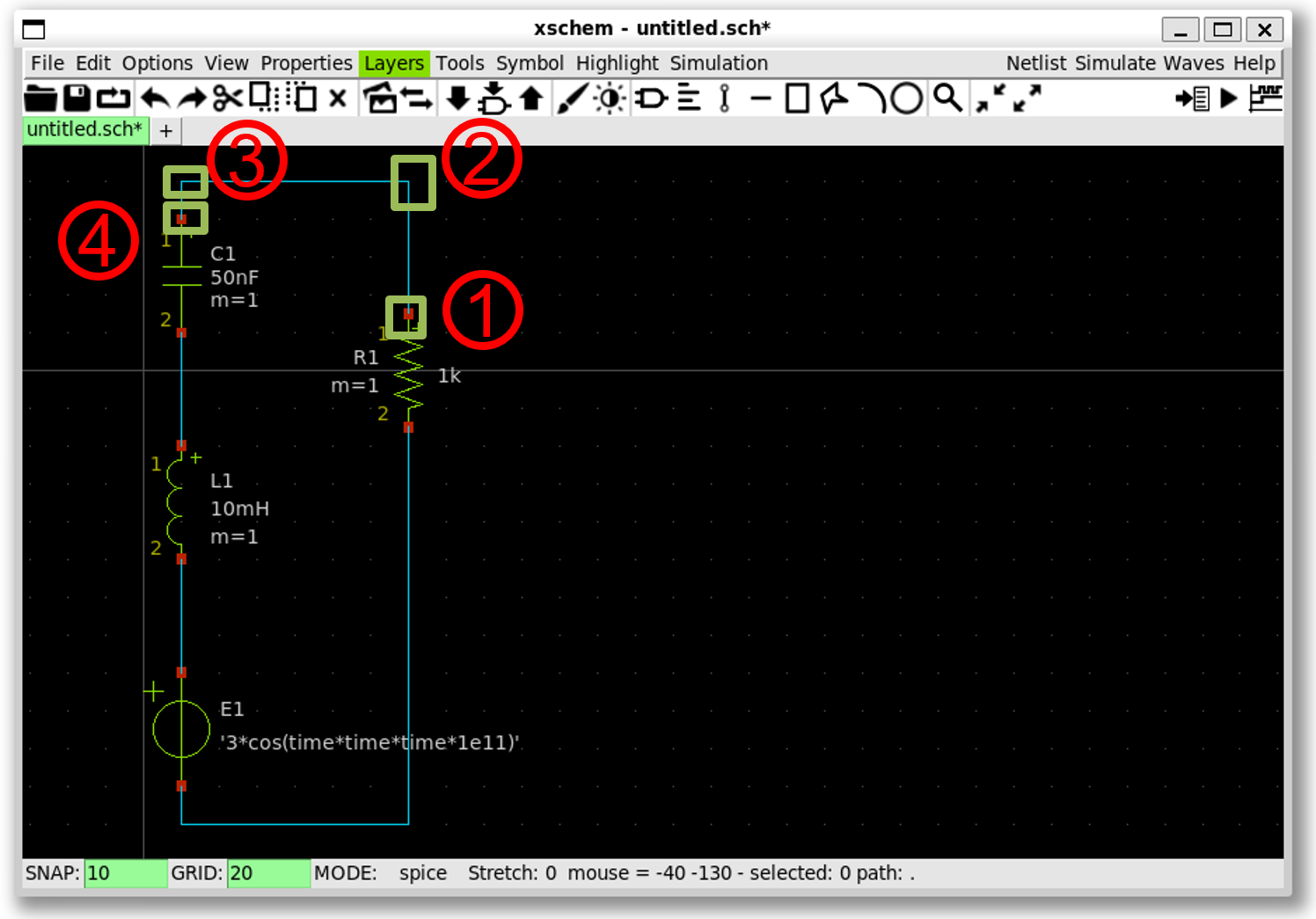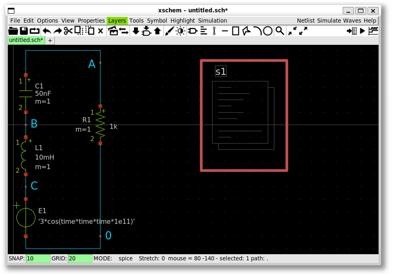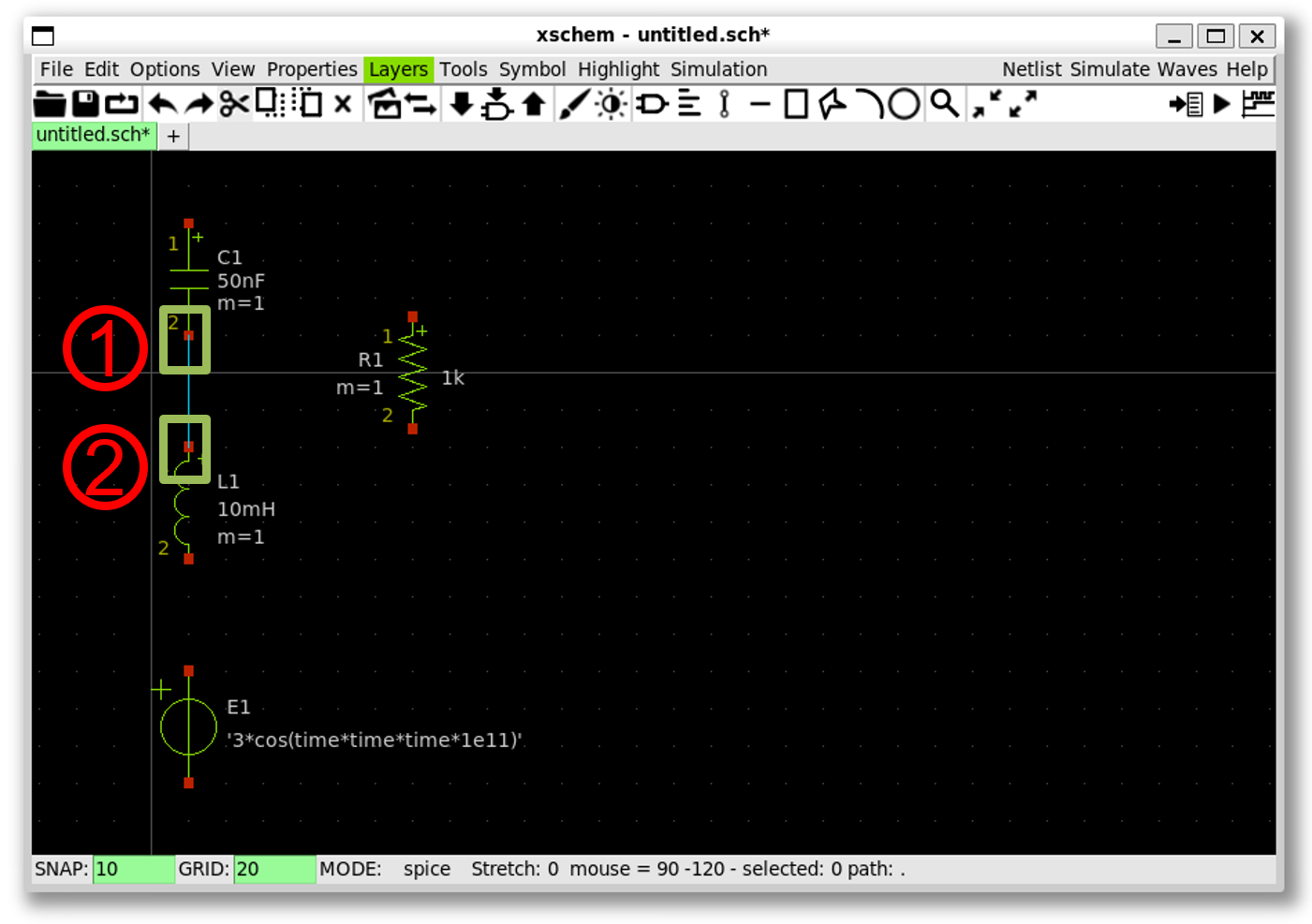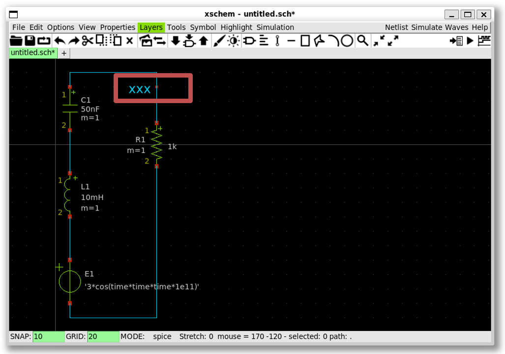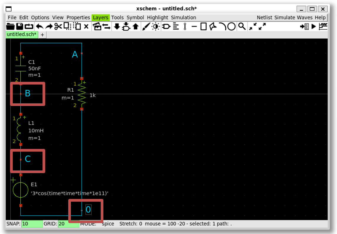 Draw a RLC circuit in Xscheme: