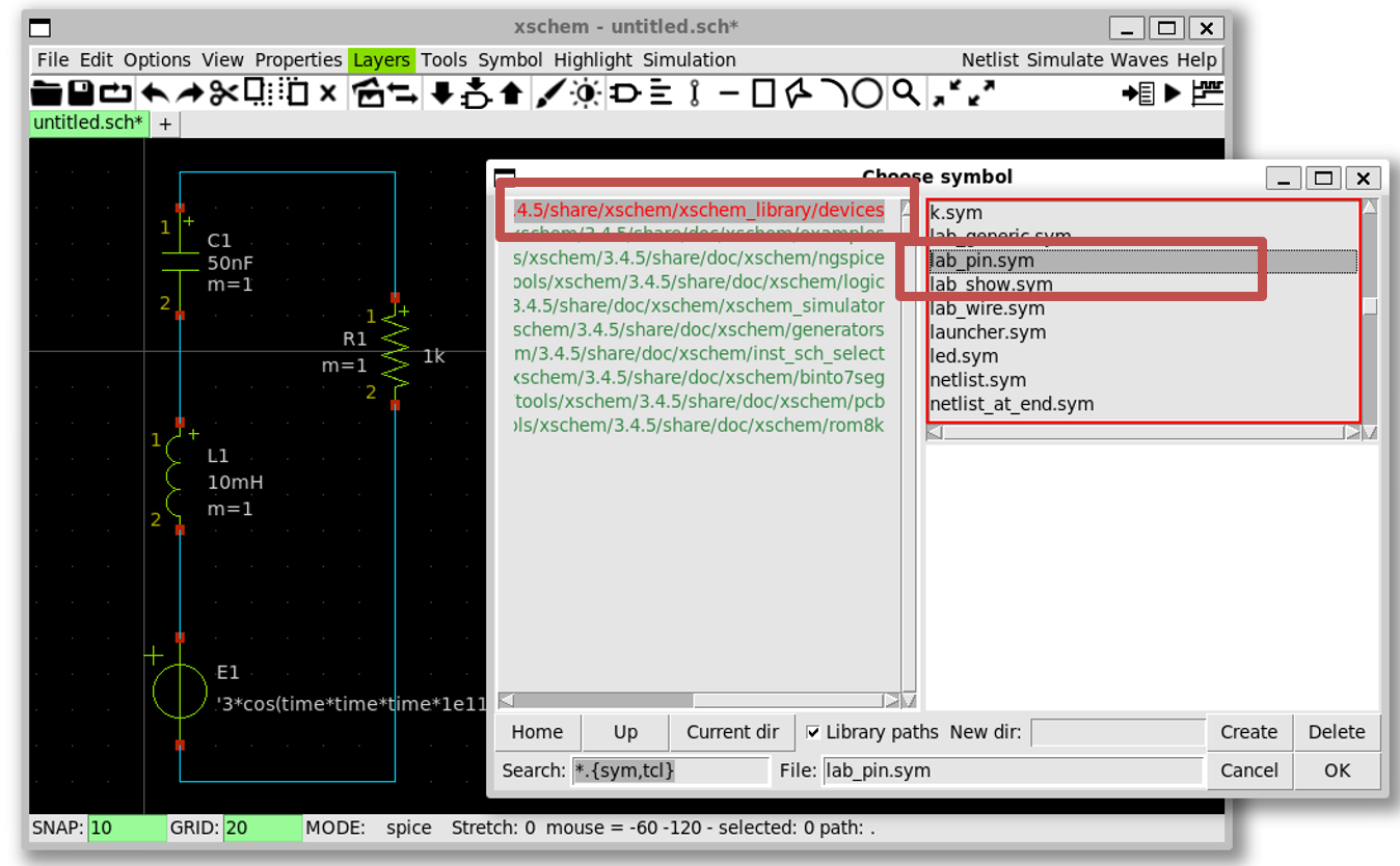 lab_pinbyxscheme_library/devices»lab_pin.sym»OK» Click on the net for thelab_pin