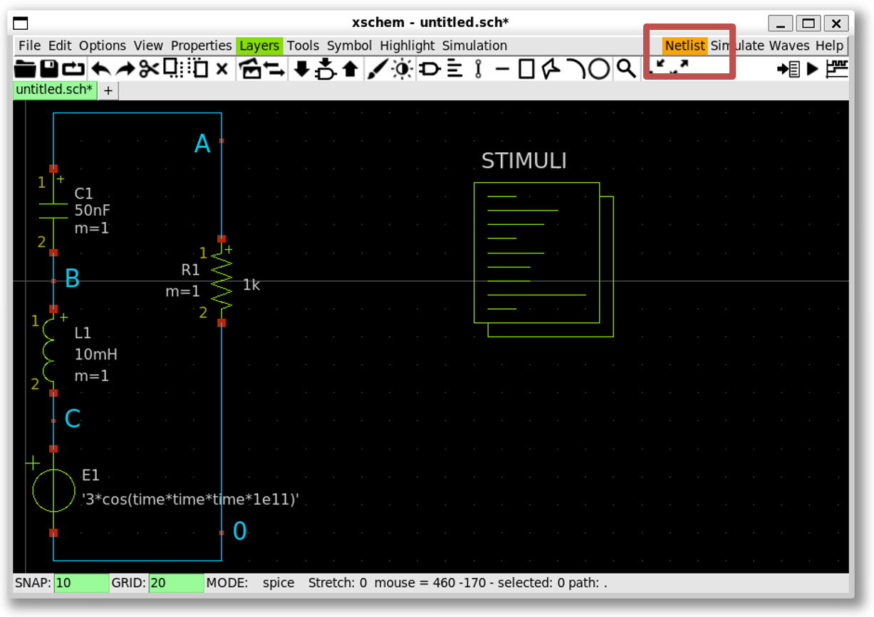 Netlistbutton to generate the spice file