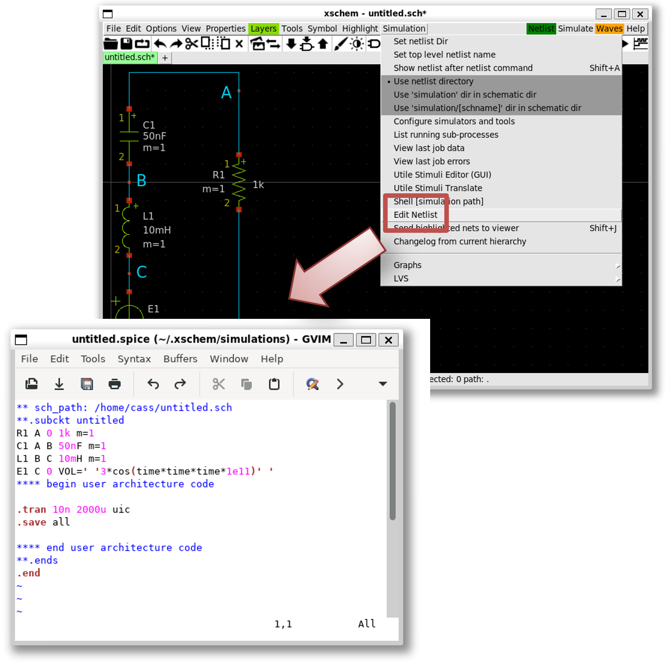Simulation»Edit netlist
