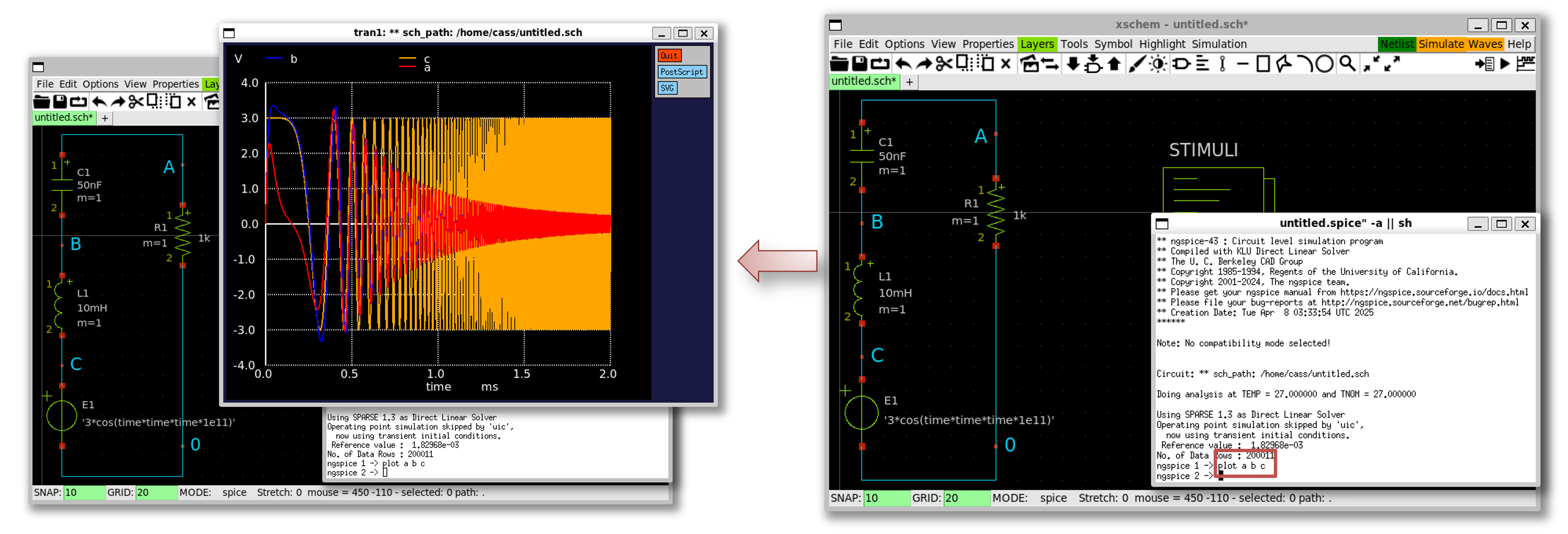 plot a b cin NGSpice terminal