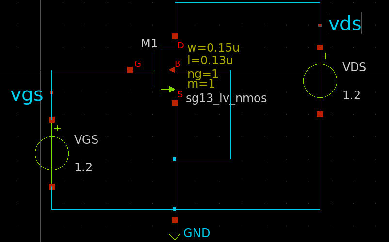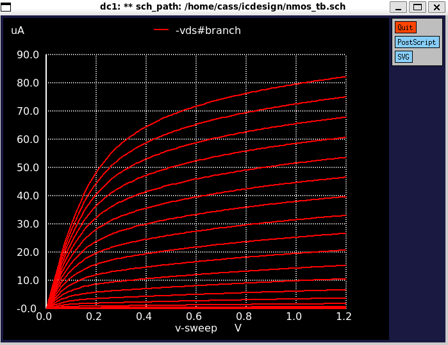 We need to sweep the VGS and VDS from 0 to 1.2V