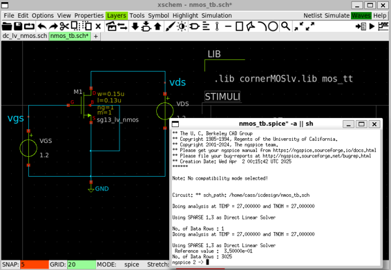 3.2 Spice Simulation using IHP SG130 PDK with Xscheme and NGSpice