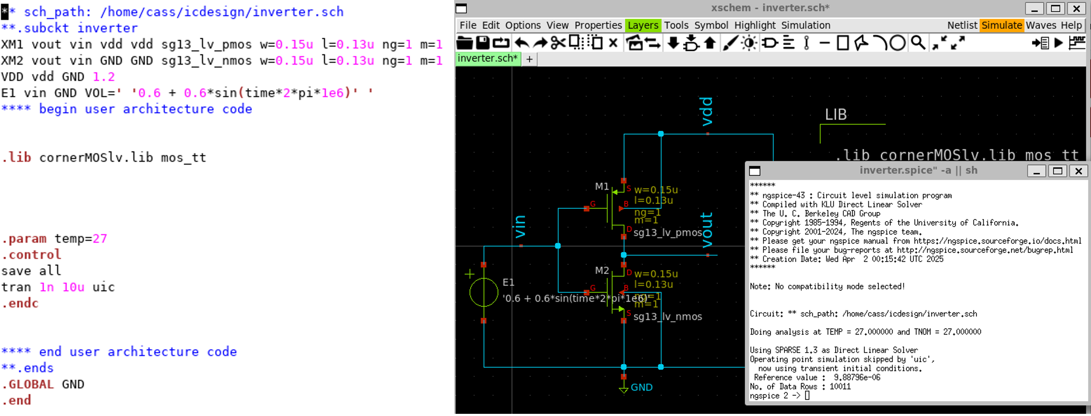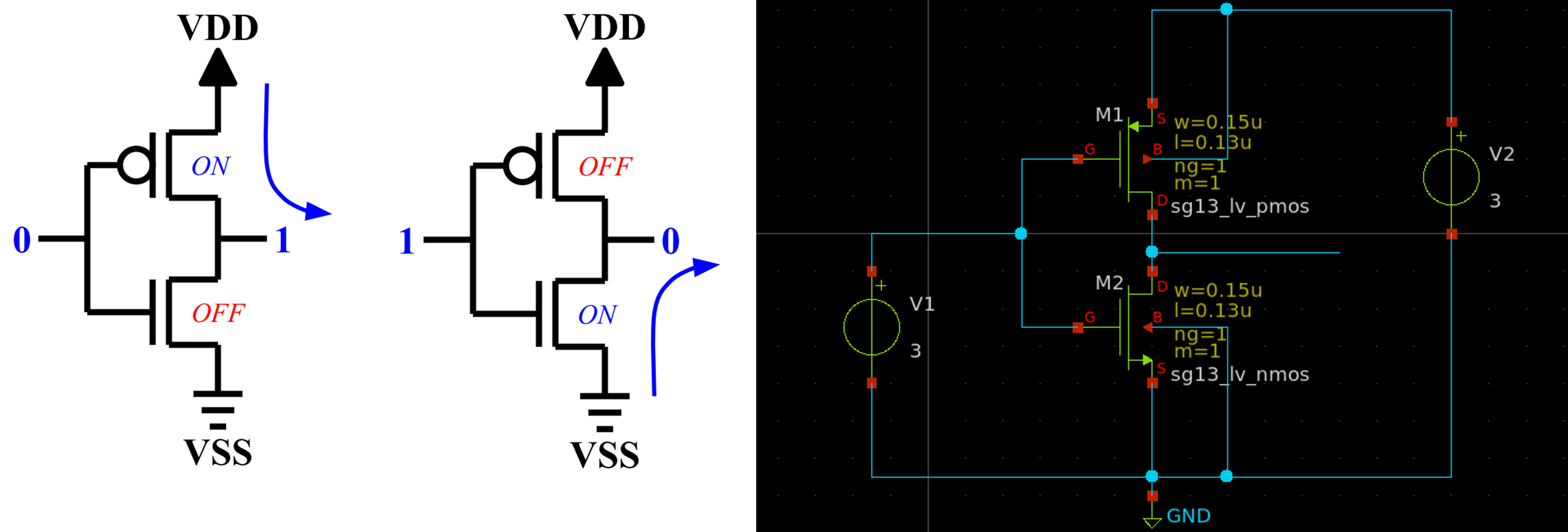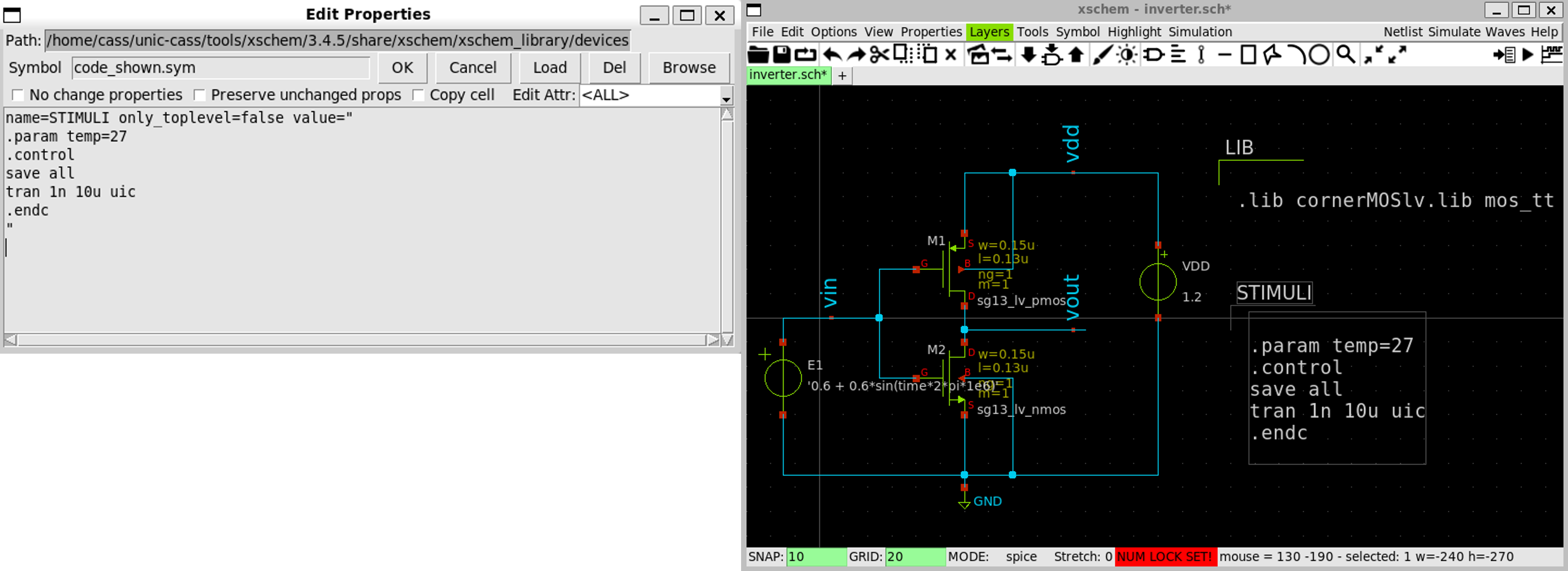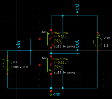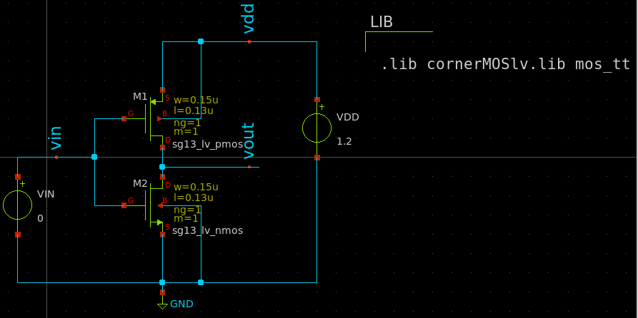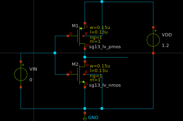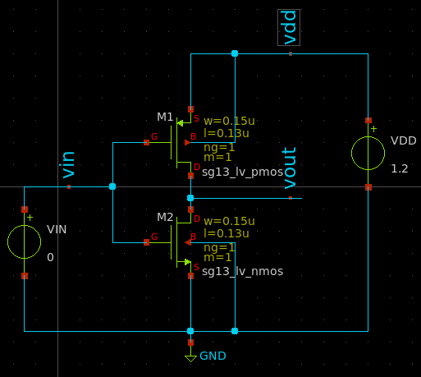 This section introduces an example how to make an inverter’s schematic and simulate it.