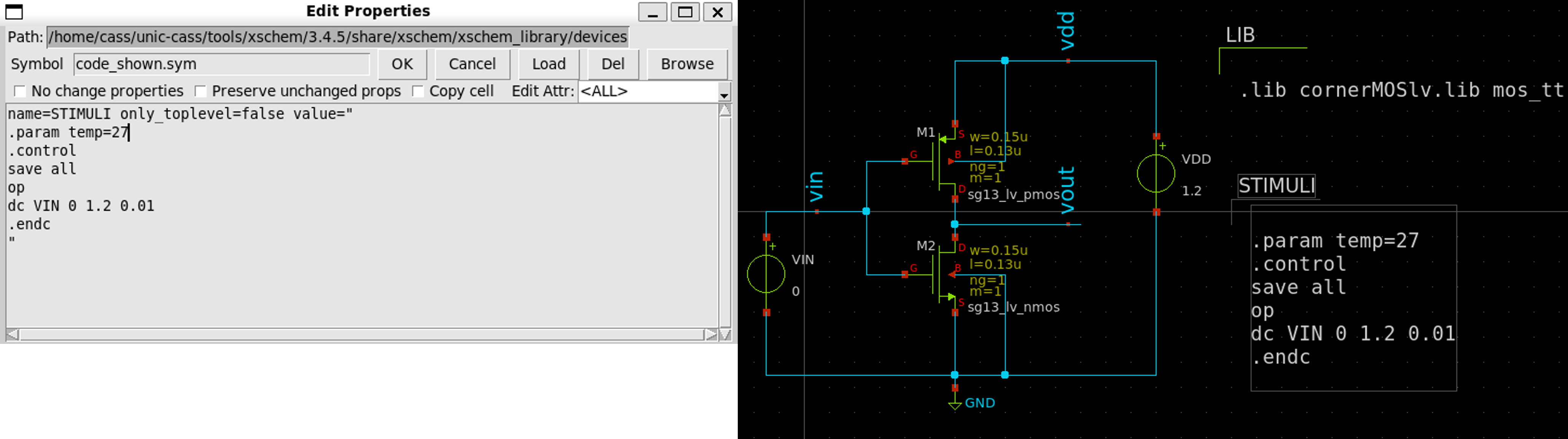 cornerMOSlv.libandmos_ttsection and insert acode_shown.syminto the schematic and modify its properties as follows.