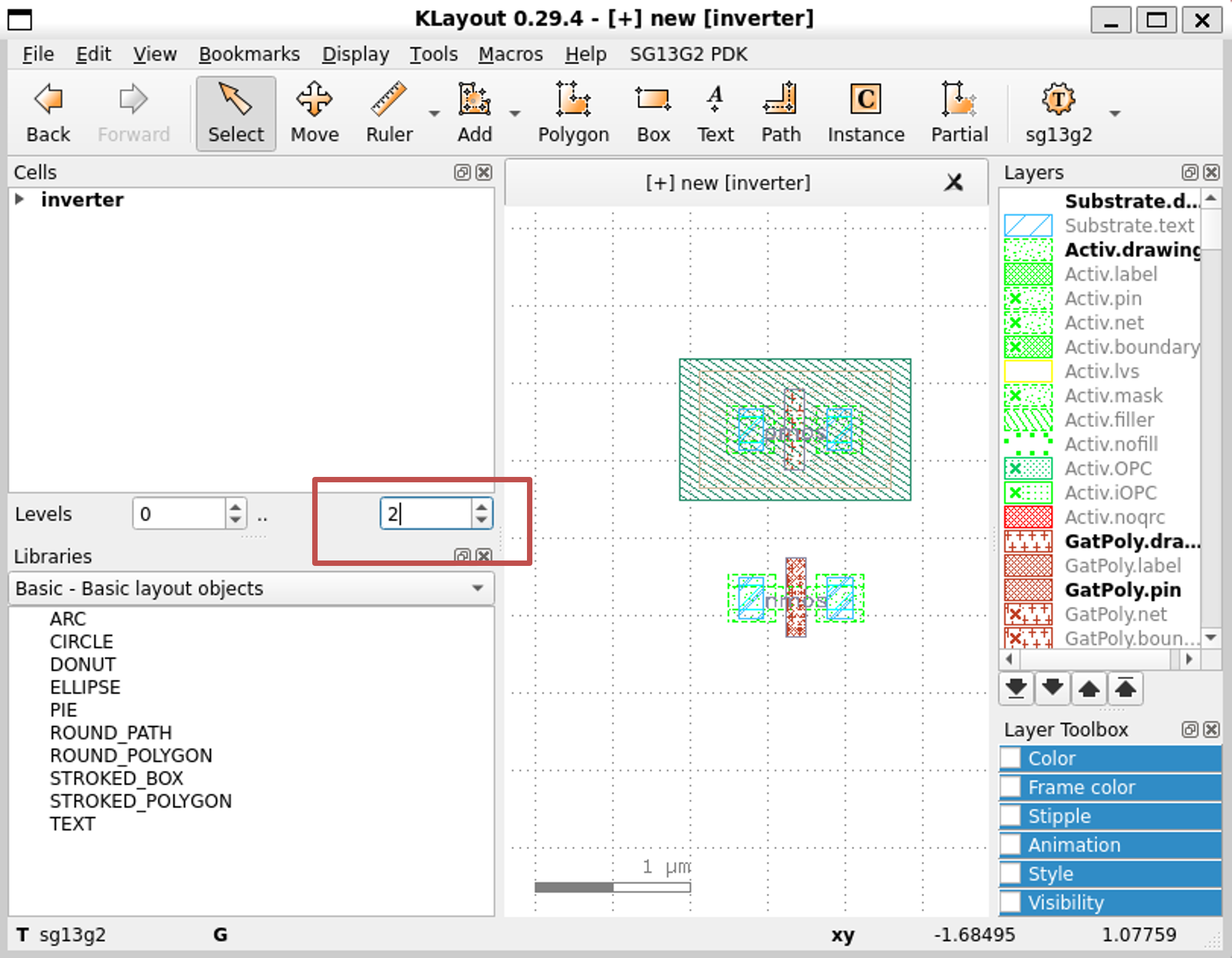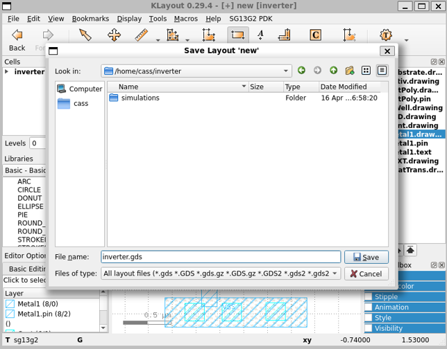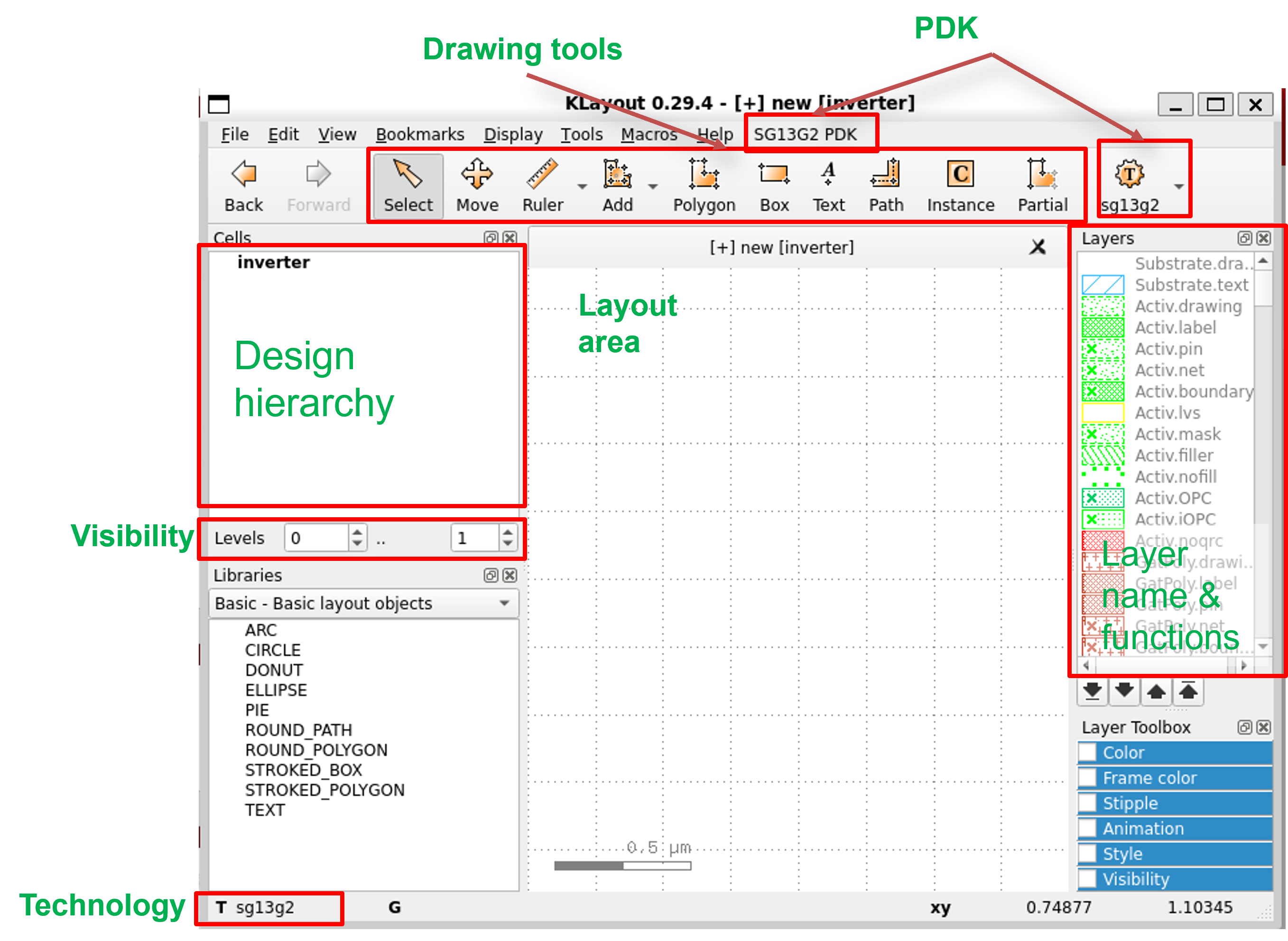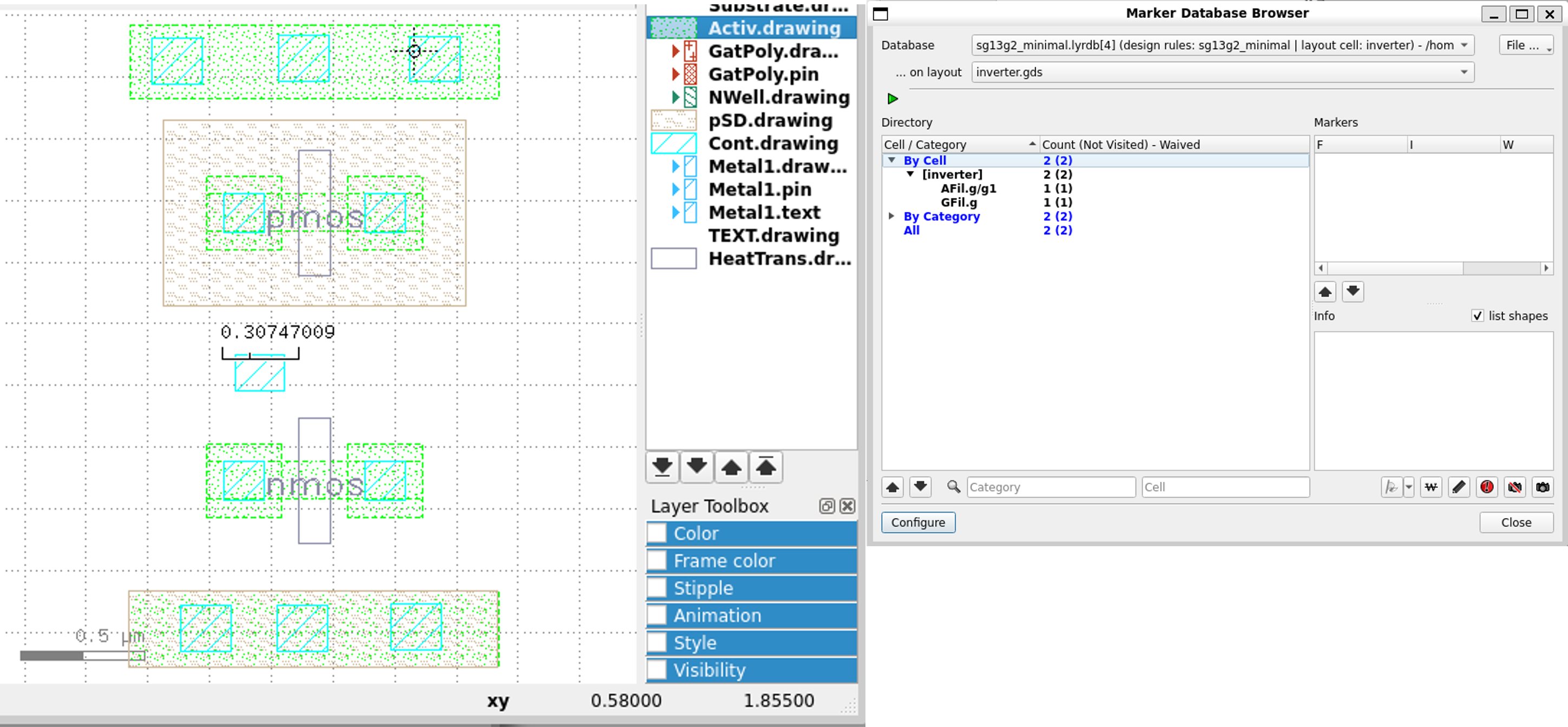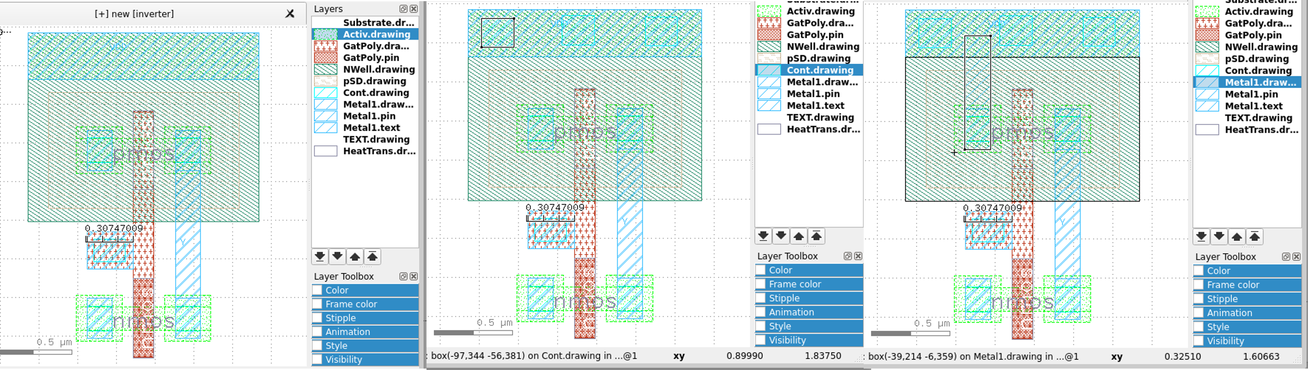 This section introduces how to layout the inverter in IHP SG130 PDK with KLayout including DRC and LVS.