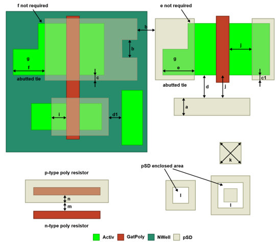 | pSD.m | Minimum pSD space to n-type poly resistors | 0.18 |
