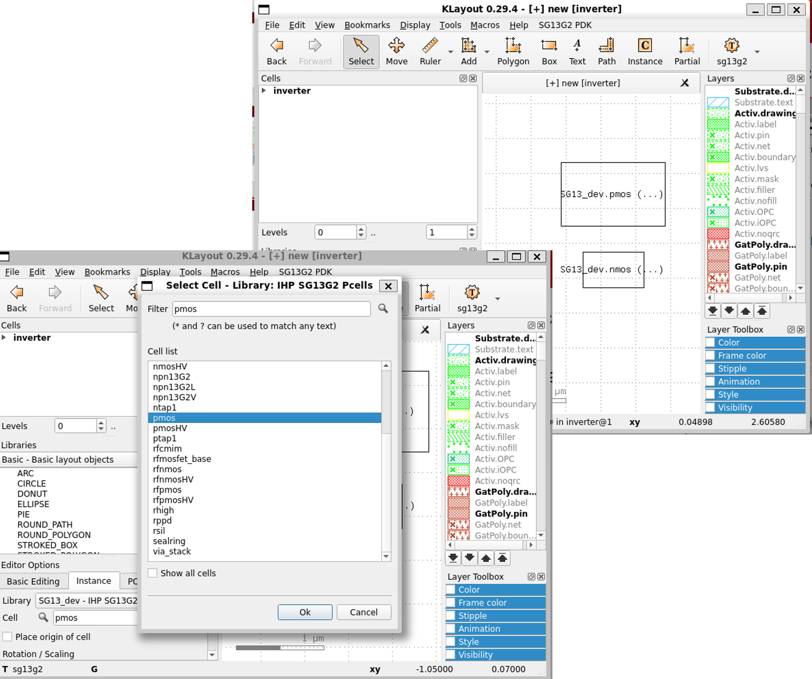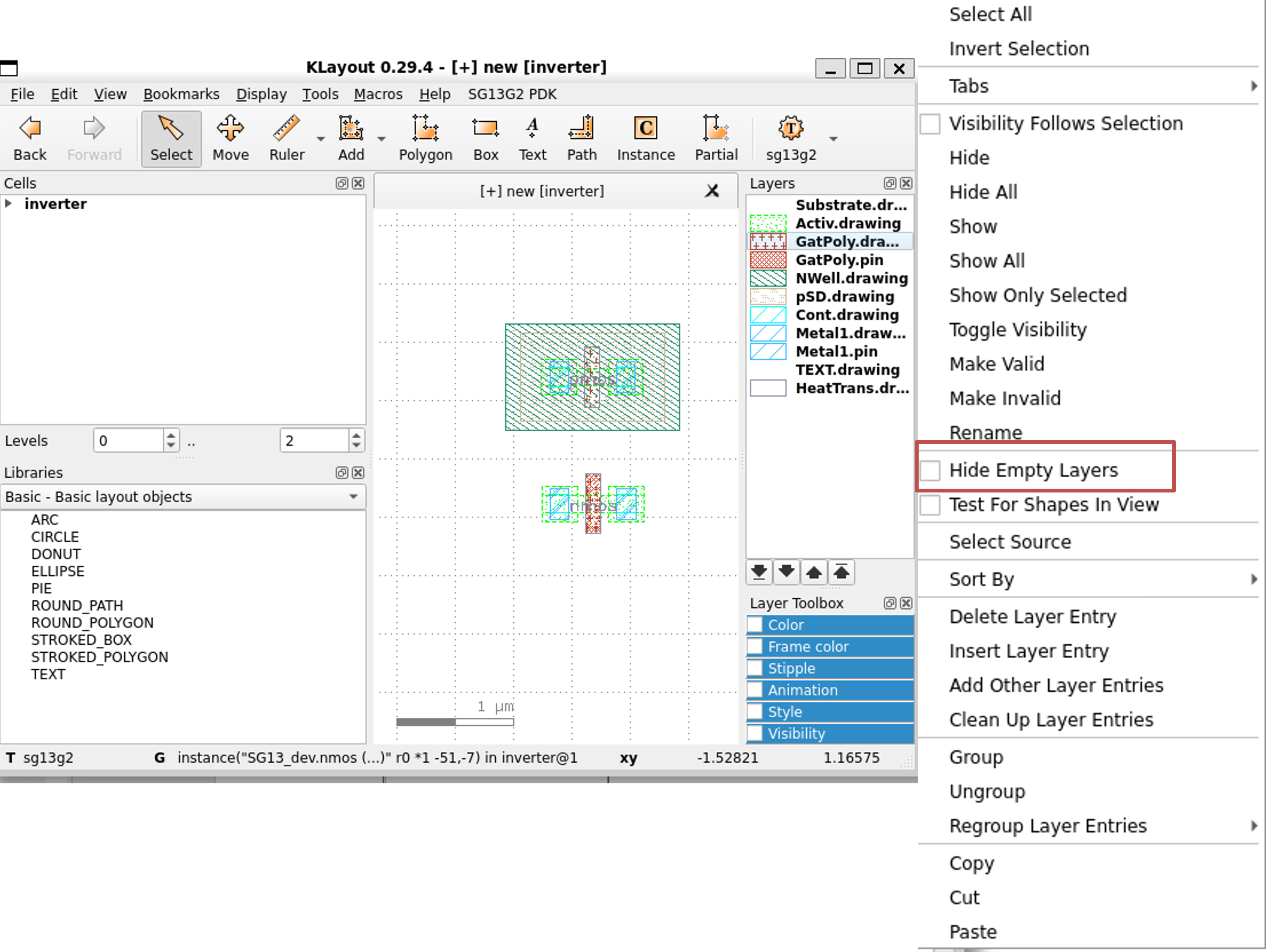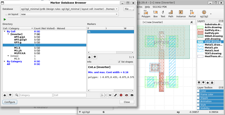 3.5 Layout an Inverter in IHP SG13G2 with KLayout including DRC and LVS