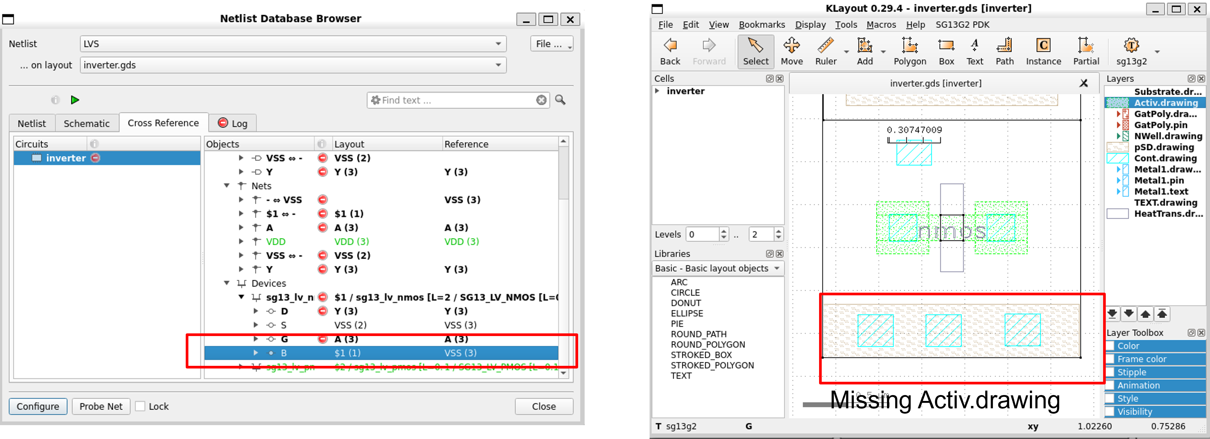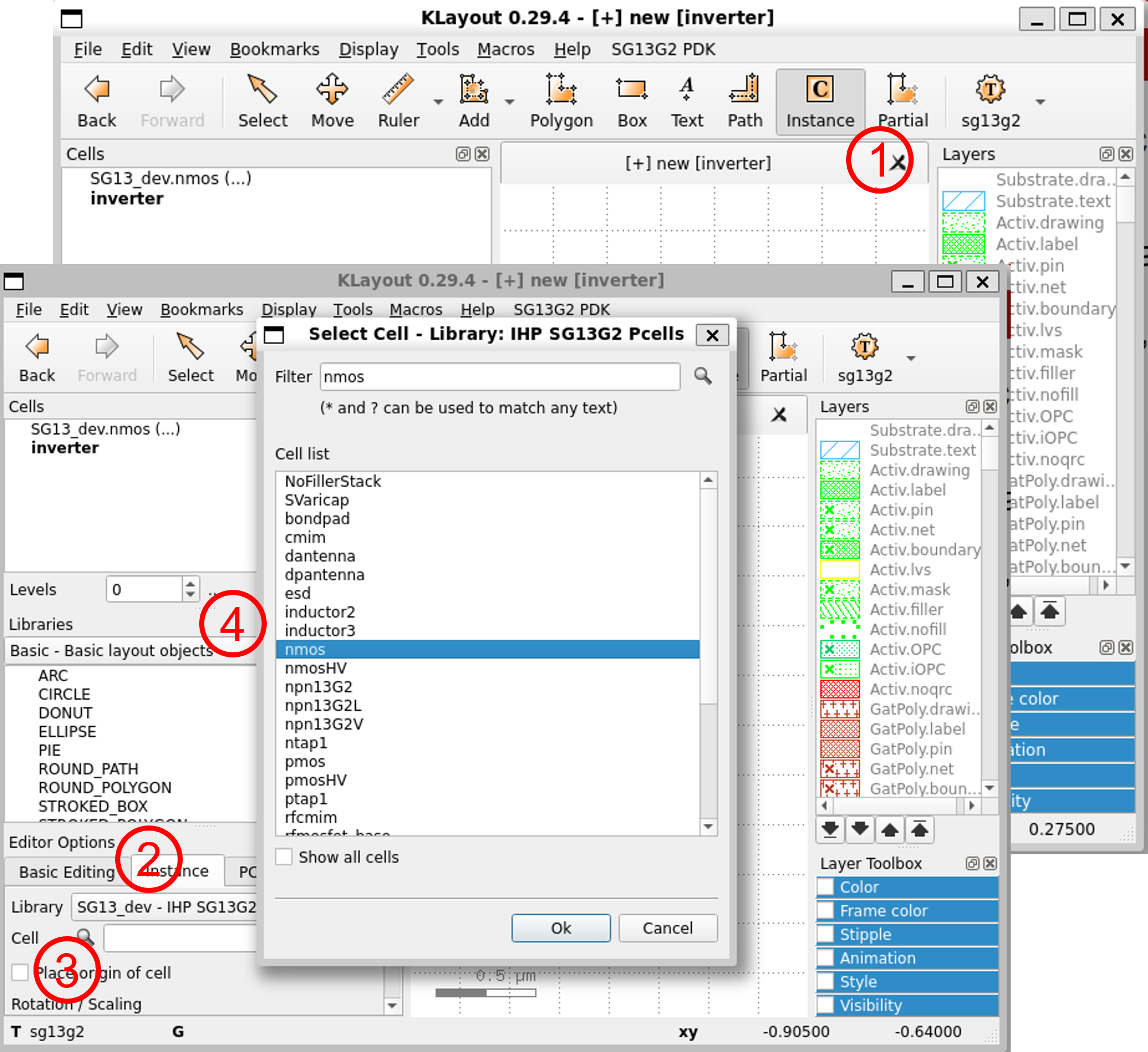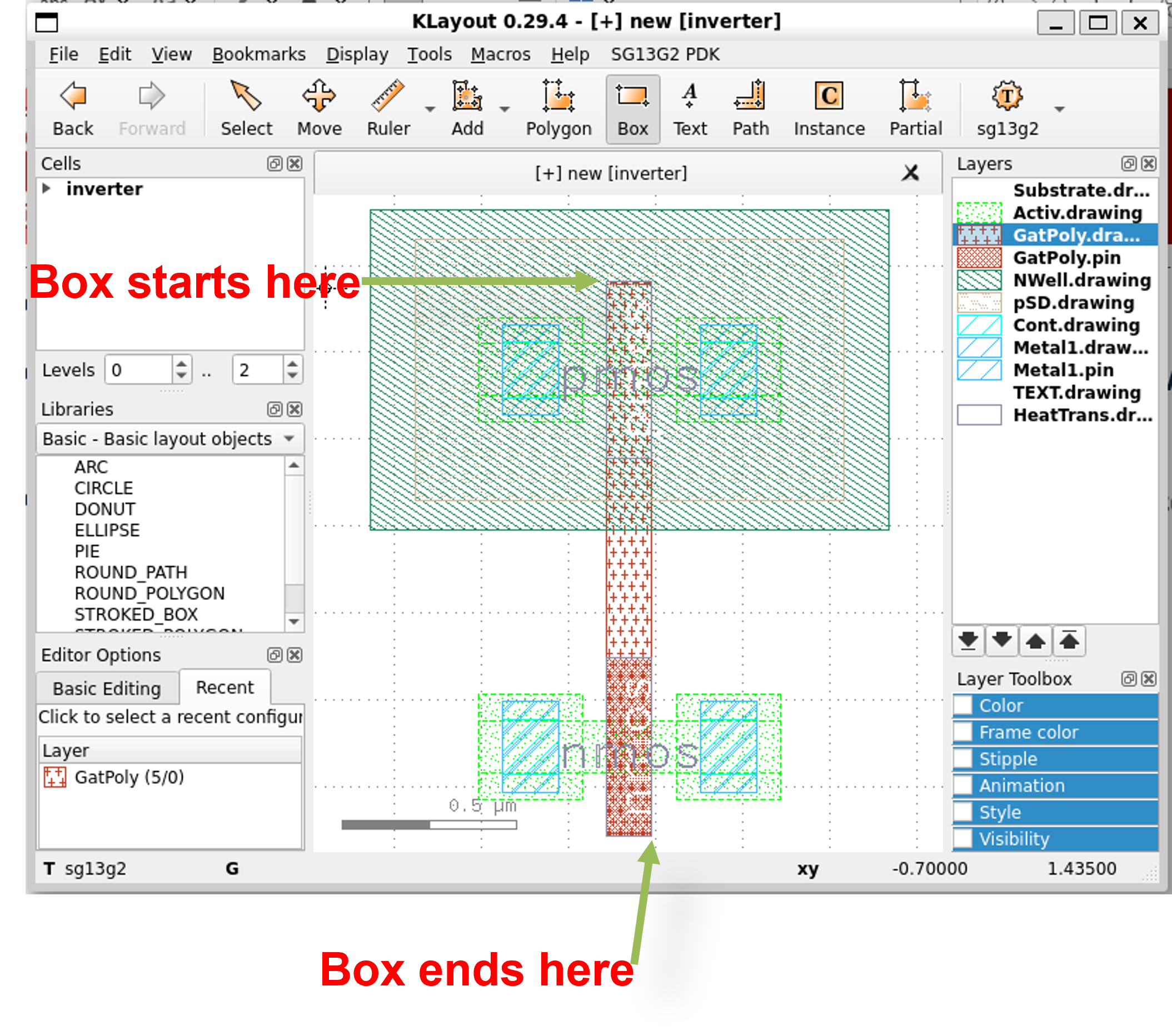 3.5 Layout an Inverter in IHP SG13G2 with KLayout including DRC and LVS