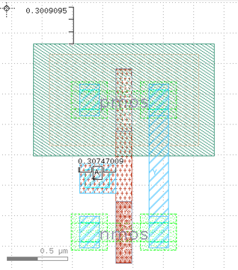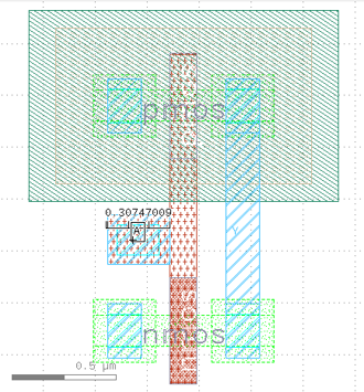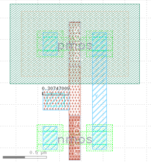 Rulerand create a ruler approximately0.3umfrom the upper edge ofpmos