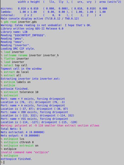 Magicwith the technology file fromIHP-SG13G2in the same folder withinverter.gds